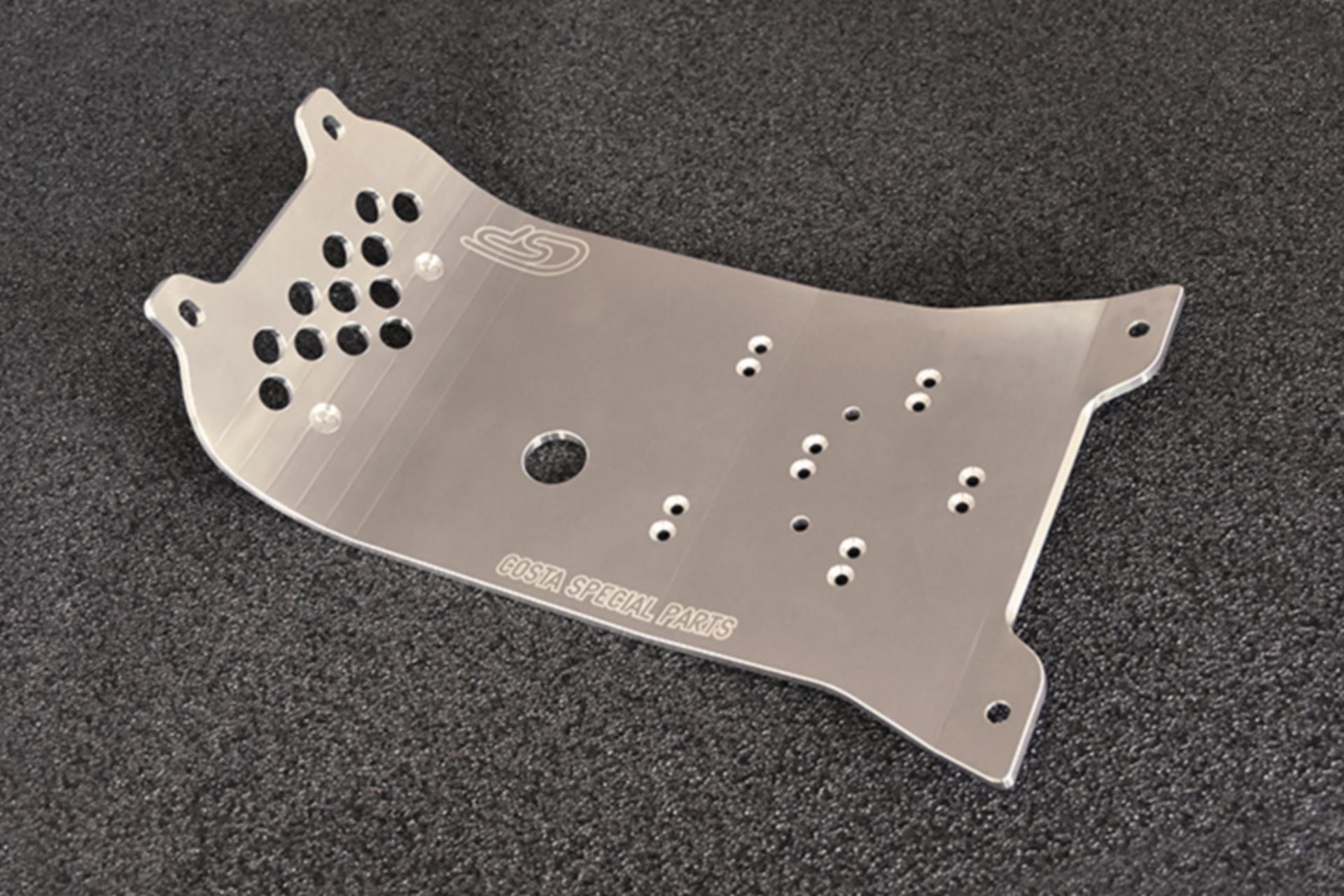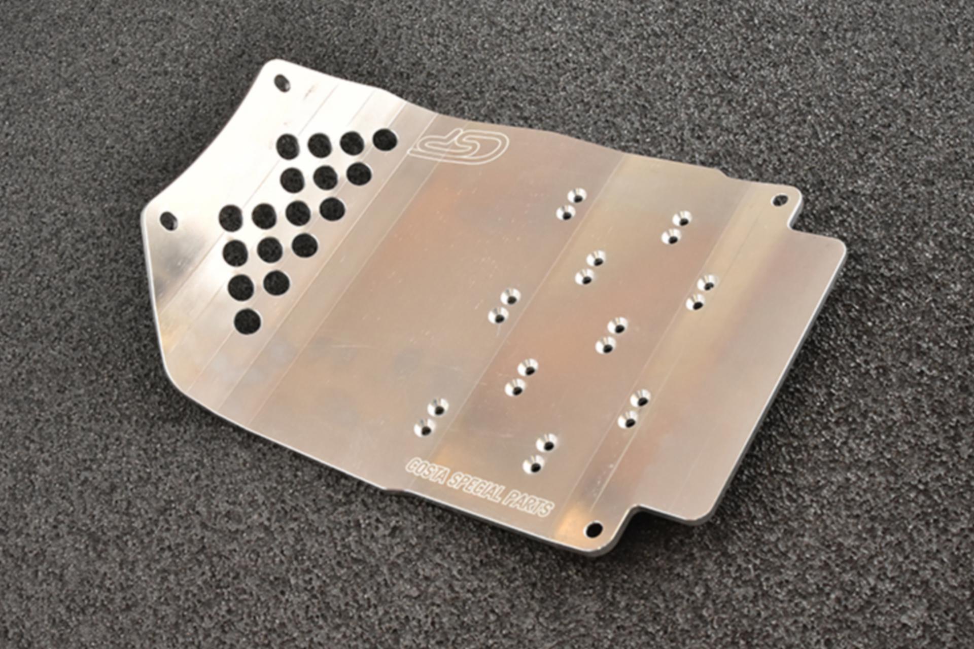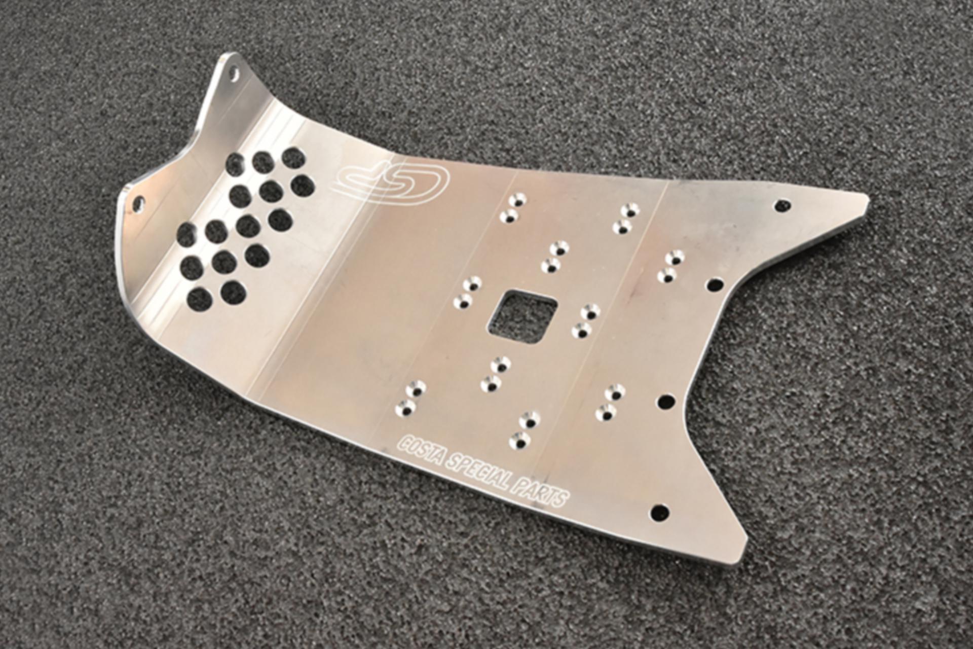 - Ampliata rispetto all’originale per proteggere al meglio i carter e il telaio in zona attacco pedane