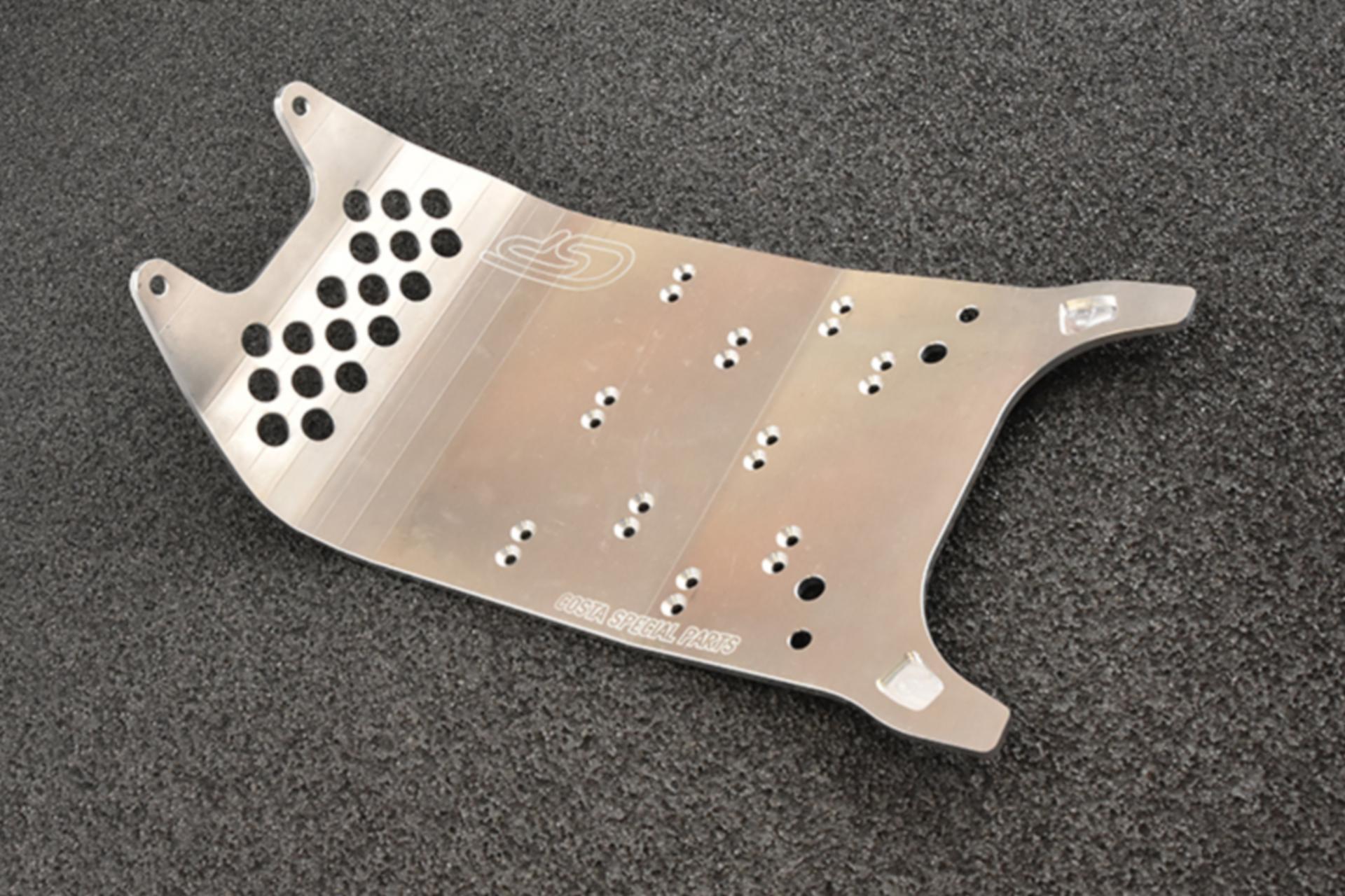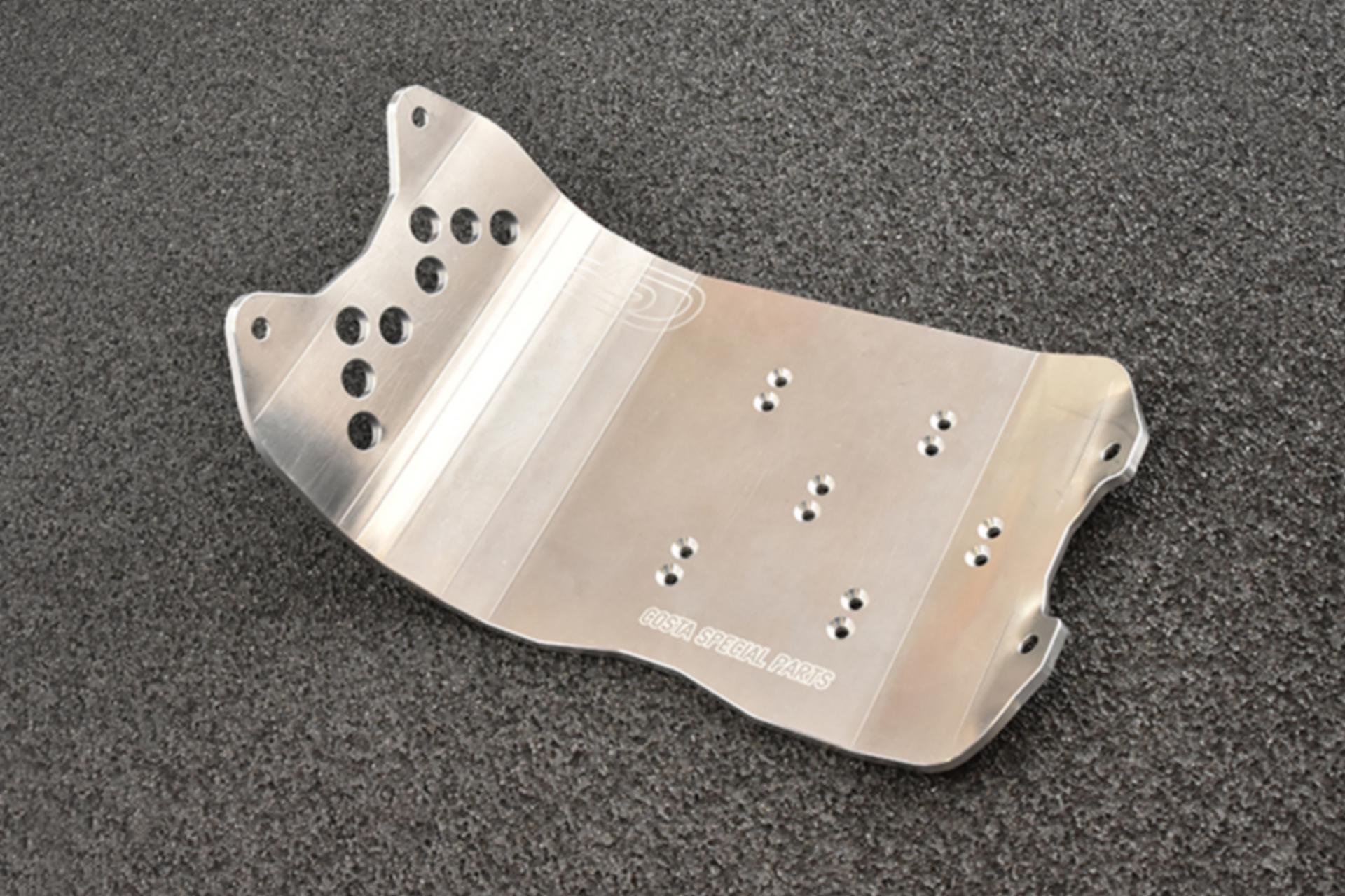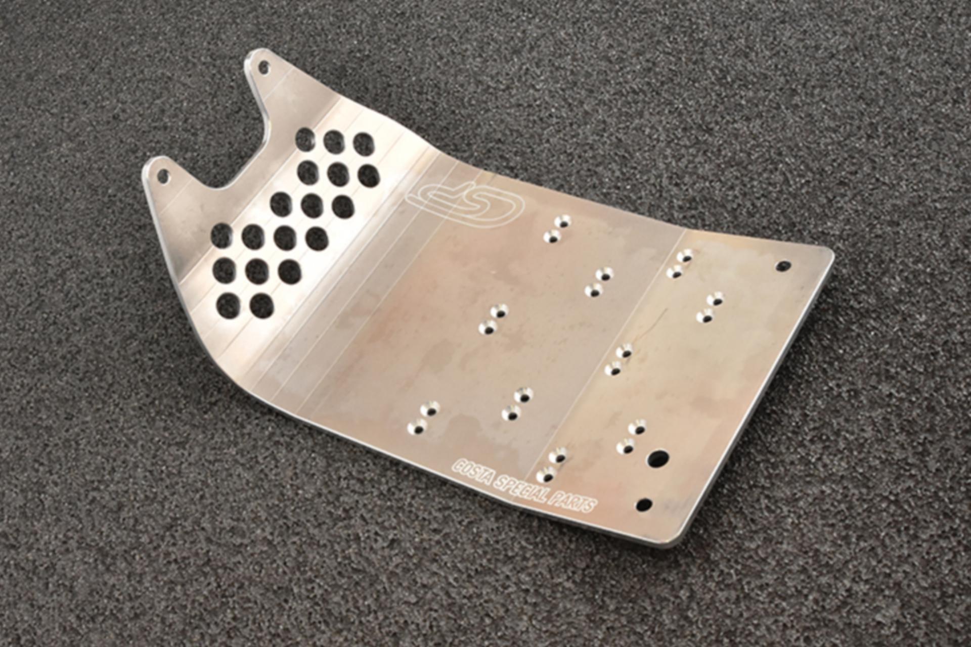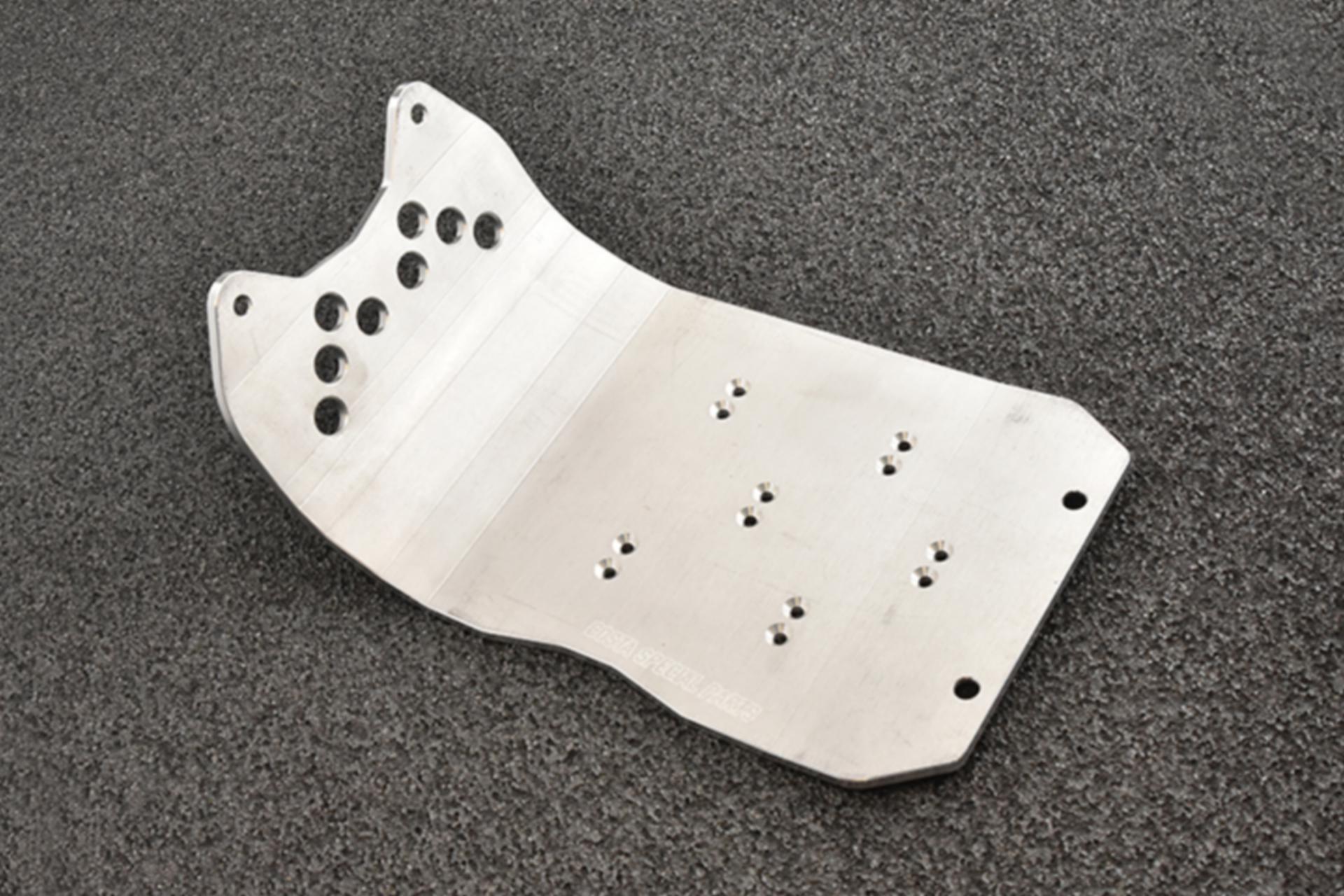 - Larger than the stock to improve protection of the engine’s carter and the frame in the footpegs attachment area